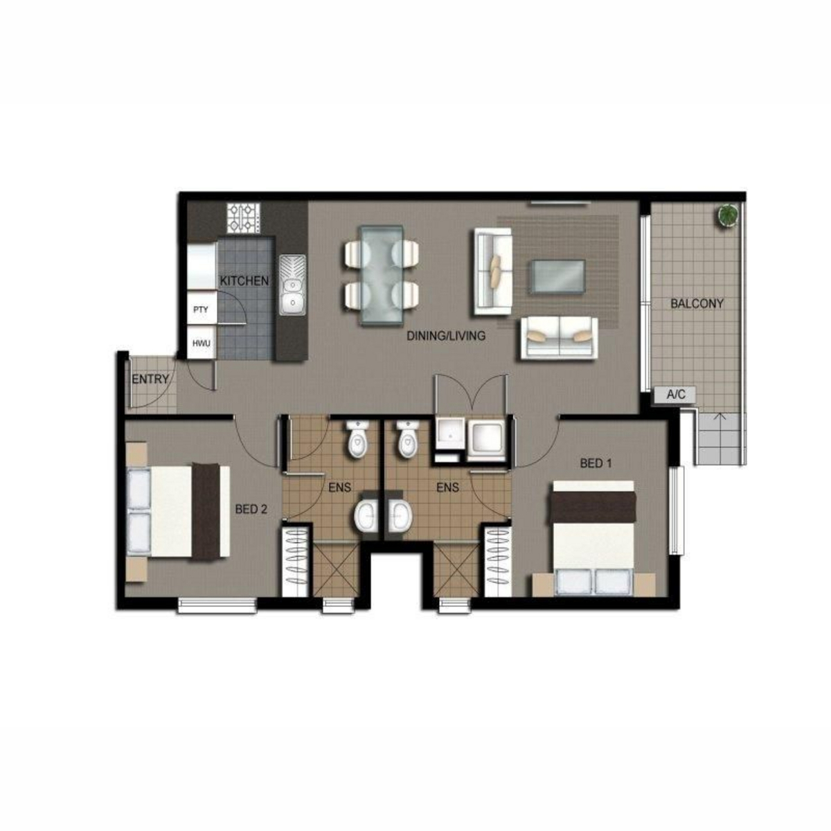 • 2 bathrooms, 1 for each bedroom