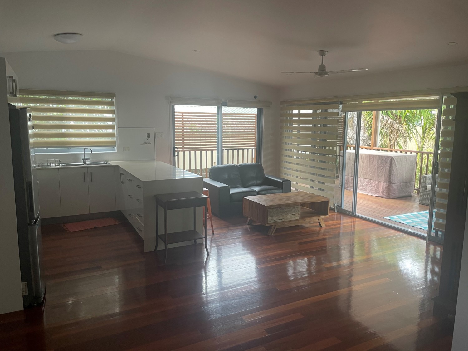 Open plan living area flows out to the undercover large timber deck - where out door lounge and dining occurs.