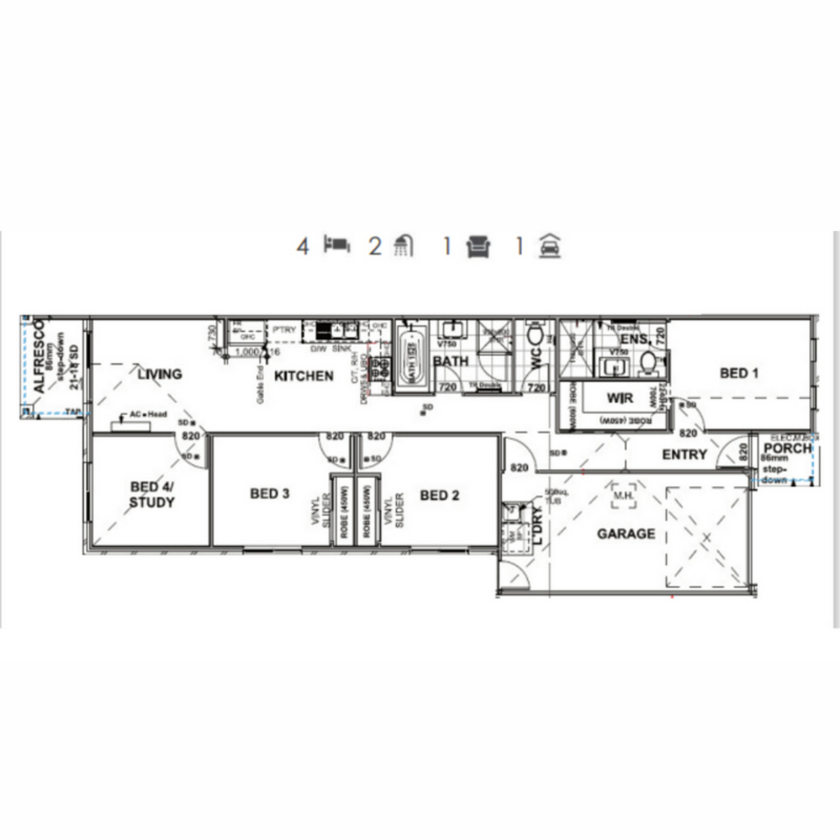 * 4th Bedroom/ Study ceiling fan, security screens