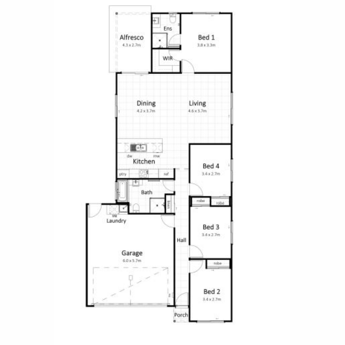 • Open plan tiled living areas for easy care